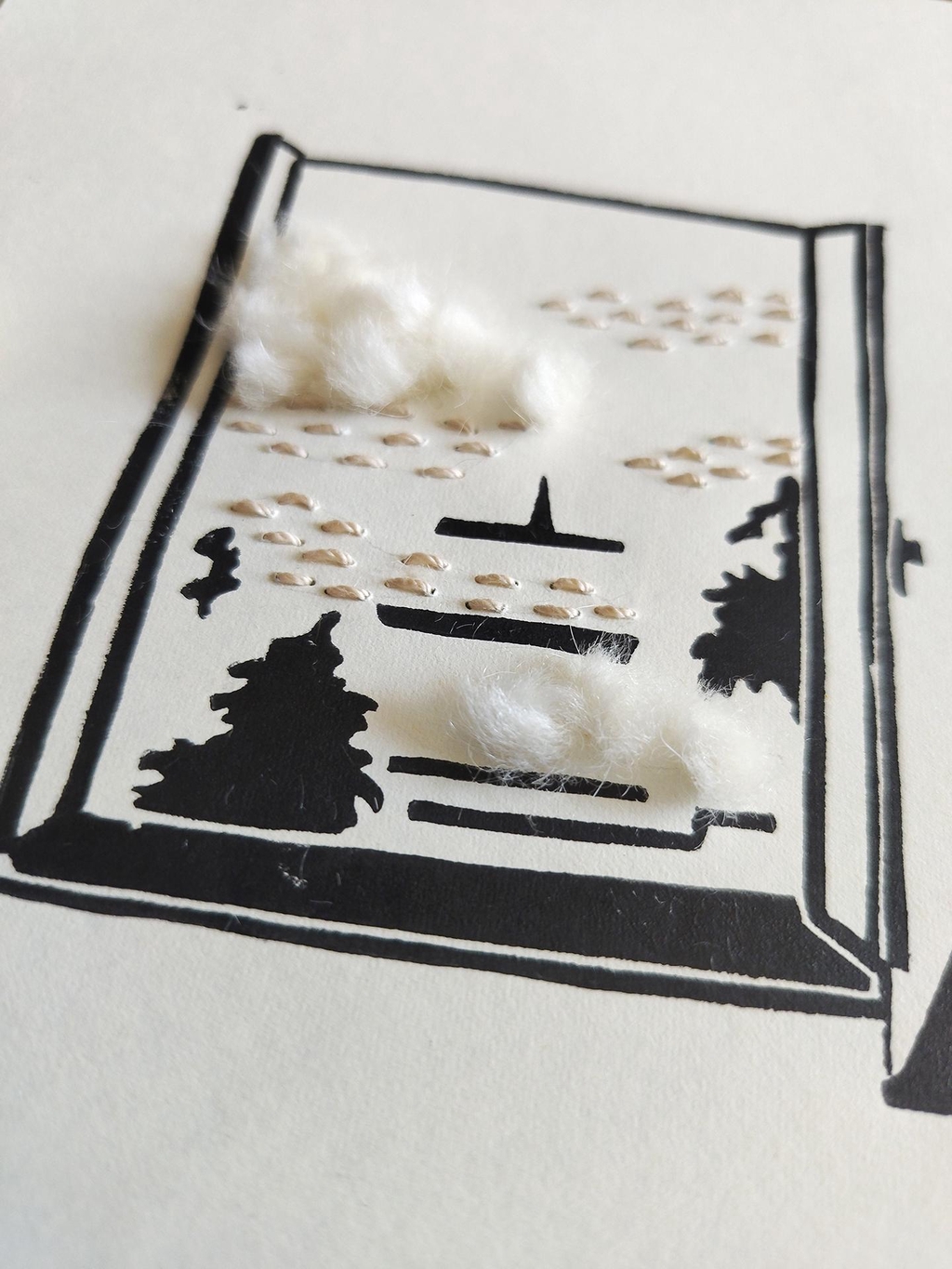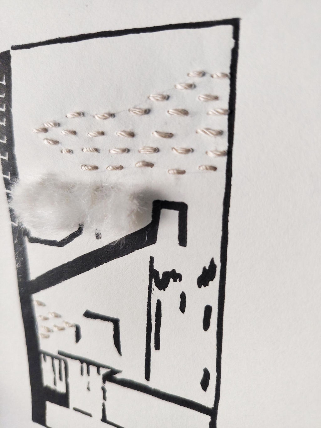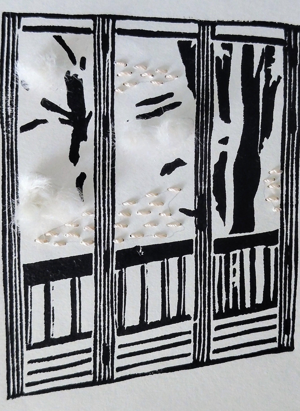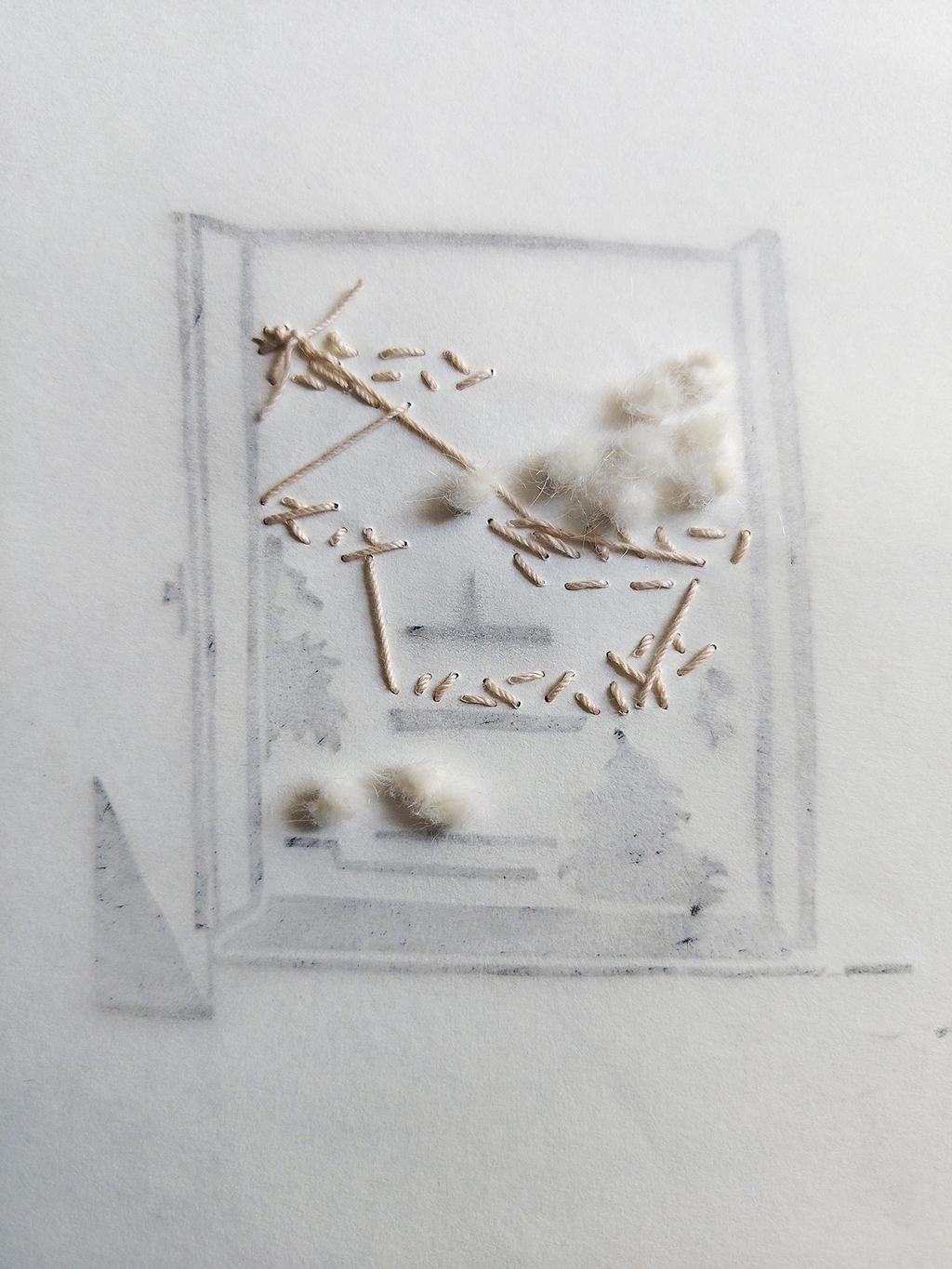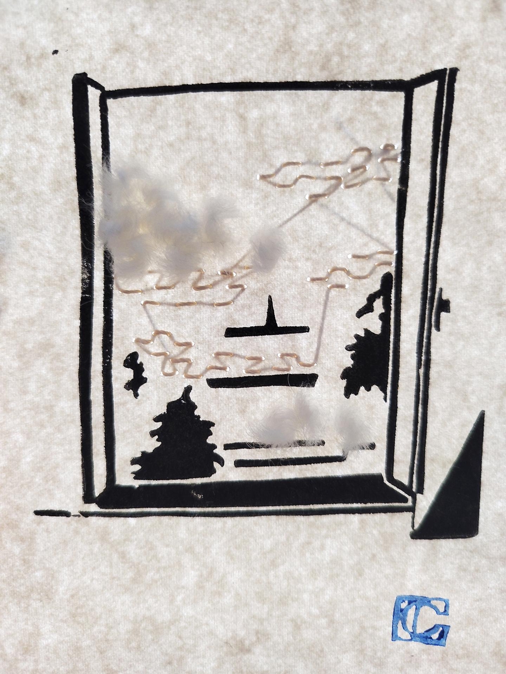 L'idée de cette image vient d'une photographie de ma fenêtre prise de l'intérieur par temps de brouillard. Alors que d'ordinaire la vue est dégagée et lointaine, avec le brouillard le monde semblait disparaitre.